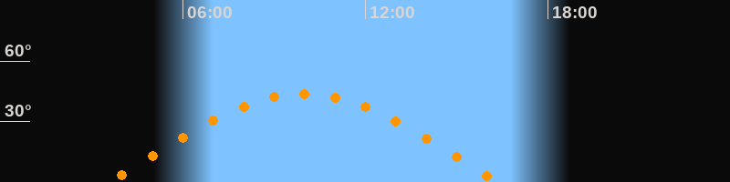 | Höchster Stand (Kulmination) | 09:58 Uhr (h = 43,7°) |