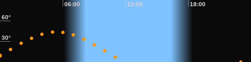 | Höchster Stand (Kulmination) | 05:23 Uhr (h = 43,7°) |