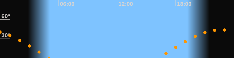 | Aufgang | 16:10 Uhr im Osten (αAz = 82,2°) |