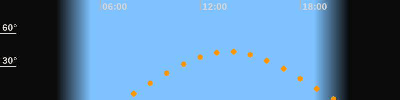 | Höchster Stand (Kulmination) | 13:43 Uhr (h = 43,7°) |