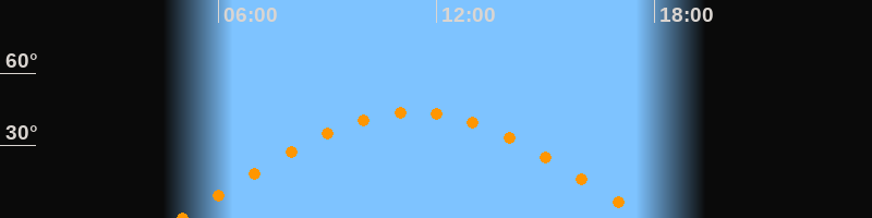 | Höchster Stand (Kulmination) | 11:22 Uhr (h = 43,7°) |