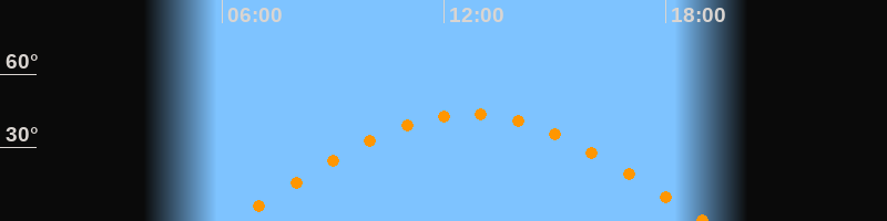 | Höchster Stand (Kulmination) | 12:41 Uhr (h = 43,7°) |