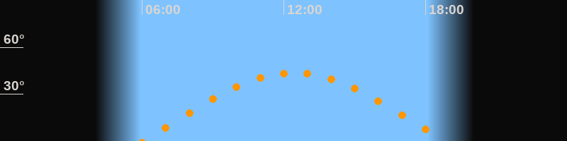 | Höchster Stand (Kulmination) | 12:26 Uhr (h = 43,7°) |