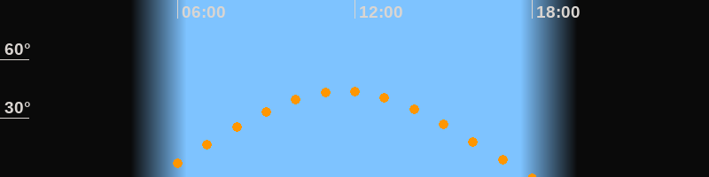 | Höchster Stand (Kulmination) | 11:34 Uhr (h = 43,7°) |