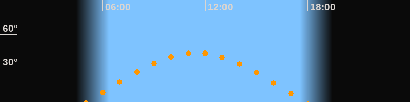 | Höchster Stand (Kulmination) | 11:27 Uhr (h = 43,7°) |