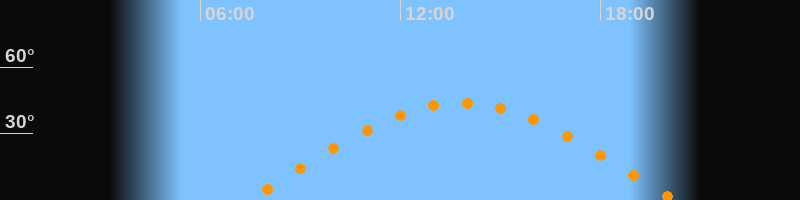 | Höchster Stand (Kulmination) | 13:49 Uhr (h = 43,7°) |