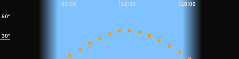 Höchster Stand (Kulmination)12:46 Uhr (h = 43,7°)