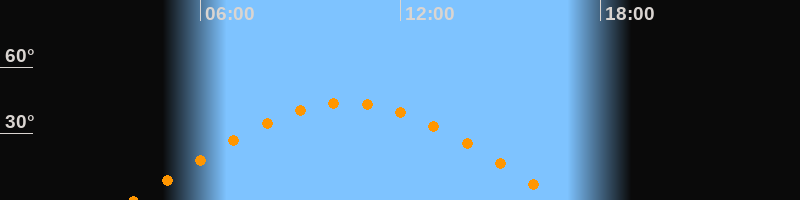 | Höchster Stand (Kulmination) | 10:25 Uhr (h = 43,7°) |