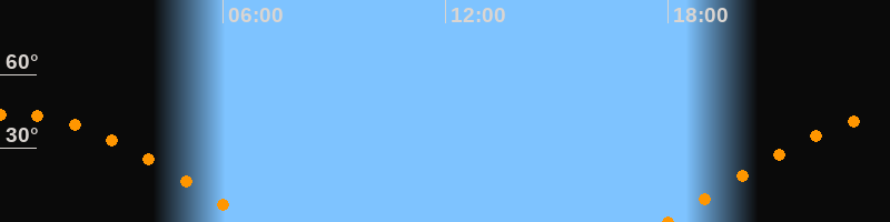 Höchster Stand (Kulmination)00:20 Uhr (h = 43,7°)