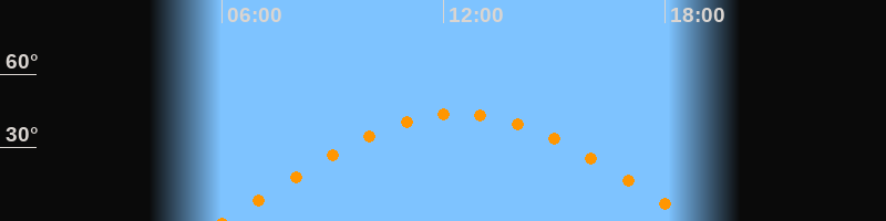 Höchster Stand (Kulmination)12:25 Uhr (h = 43,7°)