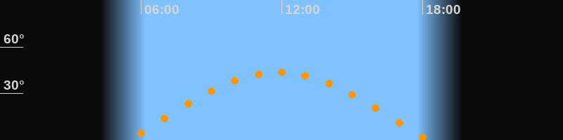 | Höchster Stand (Kulmination) | 11:51 Uhr (h = 43,7°) |