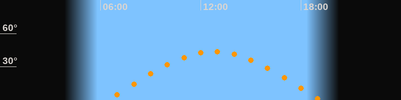 | Höchster Stand (Kulmination) | 12:48 Uhr (h = 43,7°) |