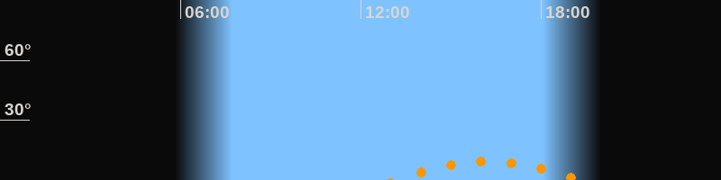 | Höchster Stand (Kulmination) | 16:12 Uhr (h = 9,4°) |
