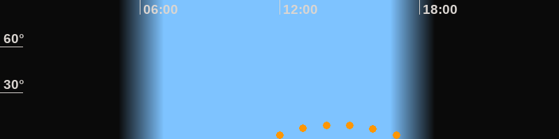 | Aufgang | 11:22 Uhr im Südosten (αAz = 140,8°) |