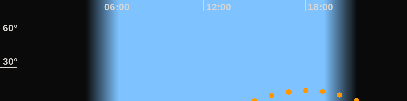 | Höchster Stand (Kulmination) | 18:01 Uhr (h = 9,4°) |