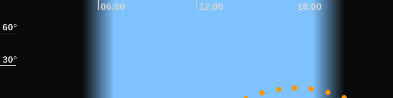 | Höchster Stand (Kulmination) | 18:03 Uhr (h = 9,4°) |