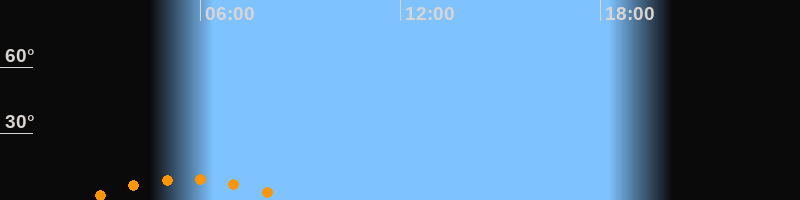 | Höchster Stand (Kulmination) | 05:37 Uhr (h = 9,4°) |