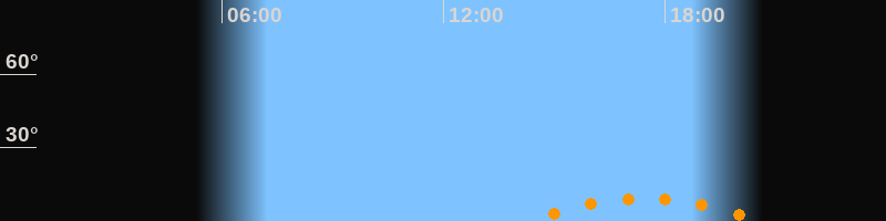 | Aufgang | 14:20 Uhr im Südosten (αAz = 140,8°) |