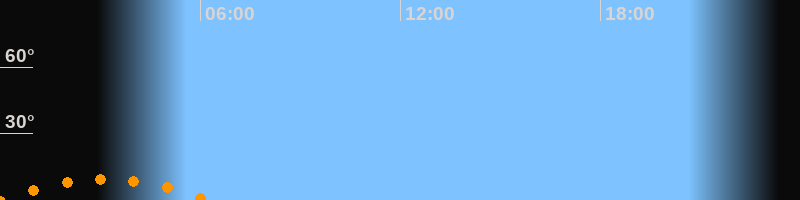 | Untergang | 06:16 Uhr im Südwesten (αAz = 219,2°) |