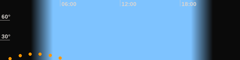 | Aufgang | 00:24 Uhr im Südosten (αAz = 140,8°) |