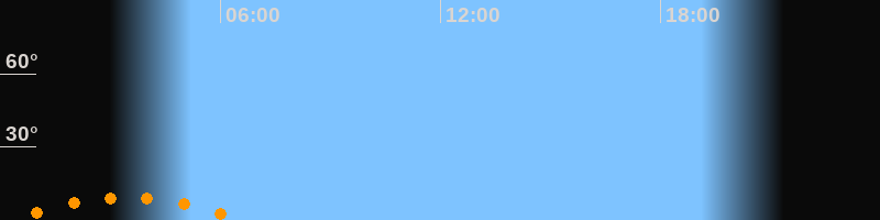 | Untergang | 06:33 Uhr im Südwesten (αAz = 219,2°) |