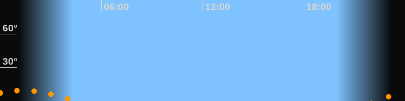 | Untergang | 04:27 Uhr im Südwesten (αAz = 219,2°) |