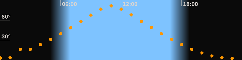| Höchster Stand (Kulmination) | 11:00 Uhr (h = 81,3°) |