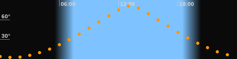 | Höchster Stand (Kulmination) | 13:10 Uhr (h = 81,3°) |