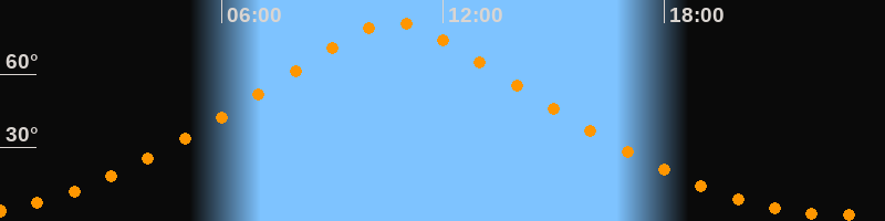 | Höchster Stand (Kulmination) | 10:41 Uhr (h = 81,3°) |