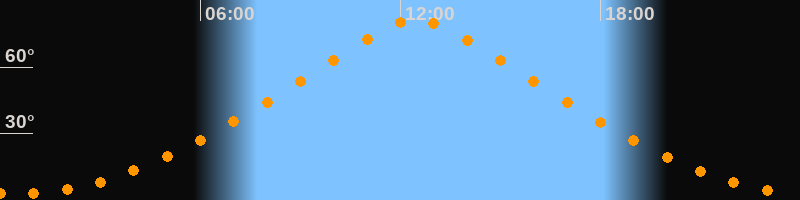 | Höchster Stand (Kulmination) | 12:29 Uhr (h = 81,3°) |