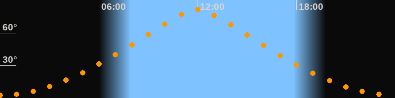 | Höchster Stand (Kulmination) | 11:57 Uhr (h = 81,3°) |