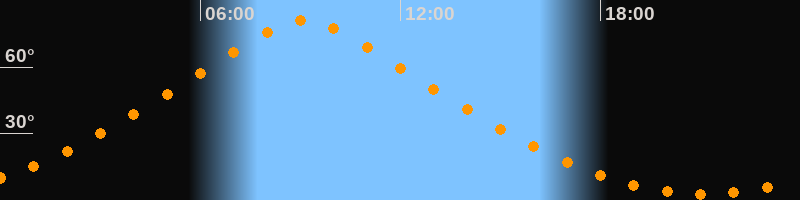 | Höchster Stand (Kulmination) | 09:07 Uhr (h = 81,3°) |