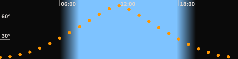 | Höchster Stand (Kulmination) | 11:54 Uhr (h = 81,3°) |