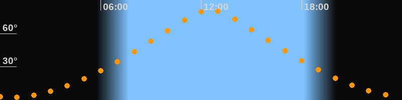 | Höchster Stand (Kulmination) | 12:33 Uhr (h = 81,3°) |