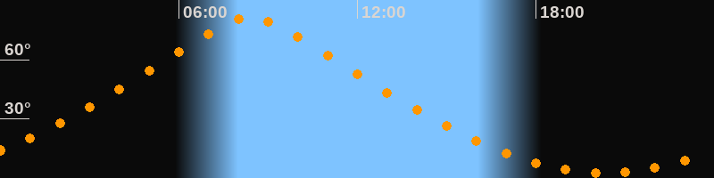 | Höchster Stand (Kulmination) | 08:24 Uhr (h = 81,3°) |