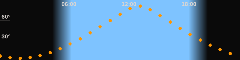 | Höchster Stand (Kulmination) | 13:52 Uhr (h = 81,3°) |