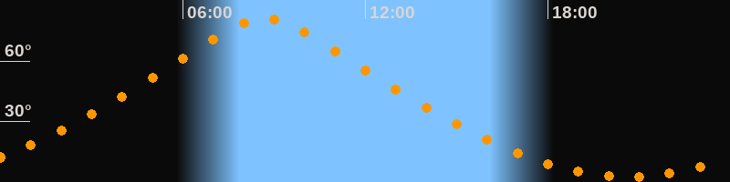 | Höchster Stand (Kulmination) | 08:42 Uhr (h = 81,3°) |