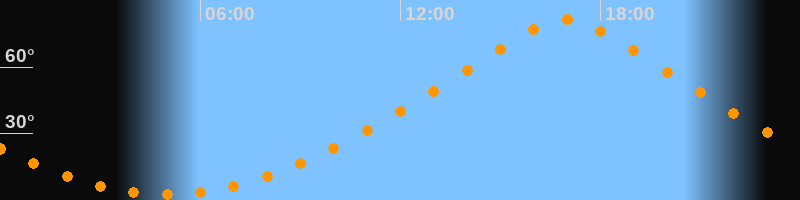 | Höchster Stand (Kulmination) | 16:57 Uhr (h = 81,3°) |
