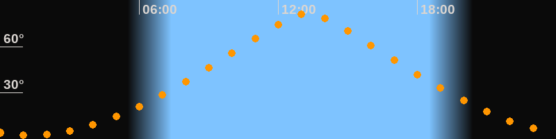 | Höchster Stand (Kulmination) | 13:15 Uhr (h = 81,3°) |