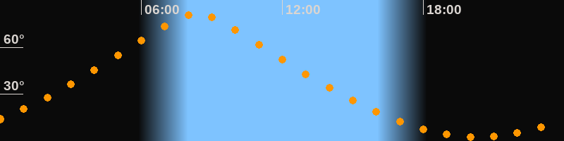 | Höchster Stand (Kulmination) | 08:22 Uhr (h = 81,3°) |