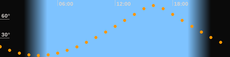 | Höchster Stand (Kulmination) | 16:00 Uhr (h = 81,3°) |