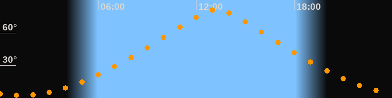 | Höchster Stand (Kulmination) | 13:14 Uhr (h = 81,3°) |