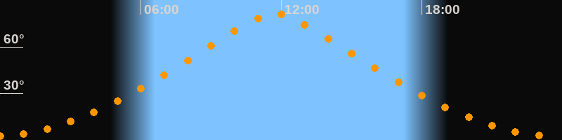 | Höchster Stand (Kulmination) | 11:44 Uhr (h = 81,3°) |