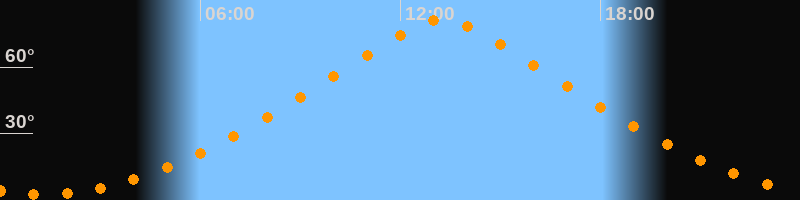 | Höchster Stand (Kulmination) | 13:15 Uhr (h = 81,3°) |