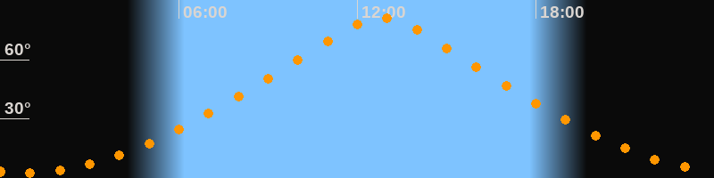 | Höchster Stand (Kulmination) | 12:48 Uhr (h = 81,3°) |