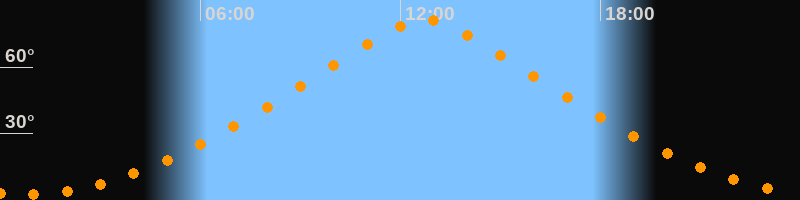 | Höchster Stand (Kulmination) | 12:44 Uhr (h = 81,3°) |