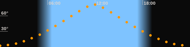 | Höchster Stand (Kulmination) | 11:53 Uhr (h = 81,3°) |