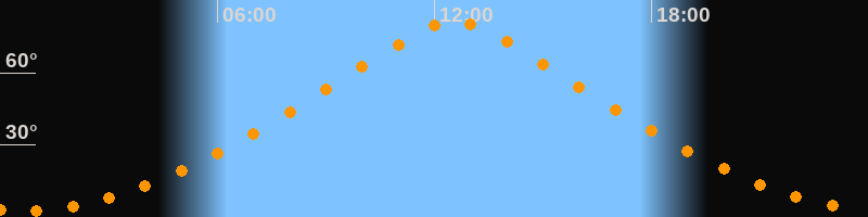 | Höchster Stand (Kulmination) | 12:33 Uhr (h = 81,3°) |