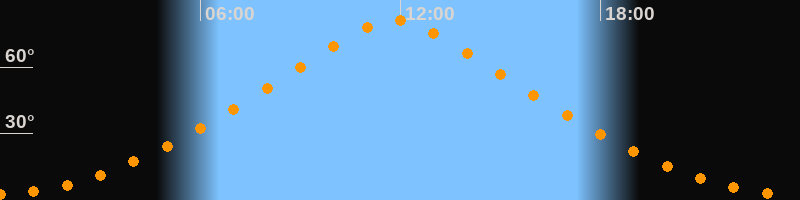 | Höchster Stand (Kulmination) | 11:50 Uhr (h = 81,3°) |