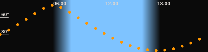 Höchster Stand (Kulmination)06:08 Uhr (h = 81,3°)